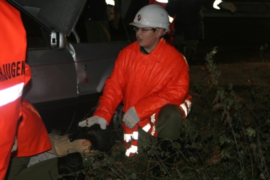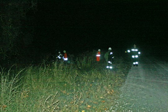 Nachdem für den Einsatzleiter die erste Stresssituation bewältigt war gab er den Befehl die nähere Umgebung nach weiteren Unfallopfern abzusuchen. Aufgrund der Deformation des Unfallautos wurde vermutet, dass mindestens ein weiters Fahrzeug beteiligt ist (welches die Jugendführer natürlich gut versteckt haben). Die Jugendlichen suchten die Umgebung mittels Handscheinwerfer ab. Der erste Schreck war groß als die Jugendlichen ein weiteres Fahrzeug knapp 50m weiter weit abseits der Strasse im Gebüsch fanden. Jetzt wurde es für den Einsatzleiter und die Einsatzkräfte wieder hektisch.