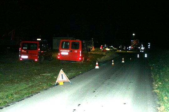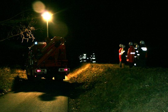 Am Einsatzort angekommen erkundete der Einsatzleiter den Unfallort und ließ routinemäßig die Einsatzstelle absichern, die Einsatzstelle beleuchten und einen Brandschutz aufbauen. Bei der Erkundung konnte er feststellen, dass unter dem verunfallten Fahrzeug eine Person liegt, welche nicht unter dem Fahrzeug hervorgezogen werden konnte. Nachdem die Beleuchtung aufgebaut wurde, konnte die Person mittels Hebekissen vom Druck des Autos befreit, hervorgezogen und gerettet werden.