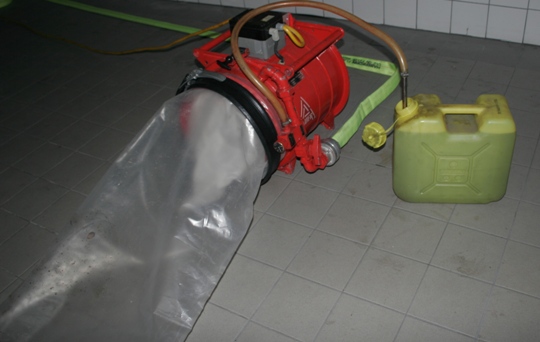 Mit dem Be- und Entlüftungsgerät von Tank 3 Krems, kann man auch Leichtschaum erzeugen. Mit einer sog. Drucklutte (Plastikschlauch) und einen speziellem Aufsatz kann dieses Gerät entsprechend adaptiert werden.
