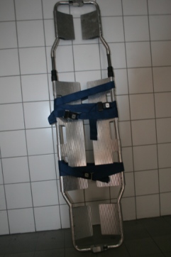 Der Vorteil der Schaufeltrage ist, dass man diese auseinander bauen kann und schonend unter einen Verletzten legen kann. Damit ist ein sicherer und schonender Transport sichergestellt.