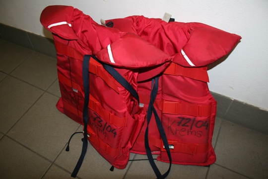 Nach dem die Freiwillige Feuerwehr Krems eine "Wasserwehr" ist, erstreckt sich das Einsatzgebiet über einen großen Teil der Donau, sowie des Kremsflusses. Um hier bei Einsätzen die Mannschaft schützen zu können, wird eine Rettungsweste übergezogen.