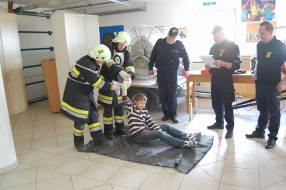 Außerdem wird auch neben dieser Praxisprüfung das theorethische Wissen der Teilnehmer über Technische Einsätze im Feuerwehrwesen geprüft. So hat jeder Teilnehmer eine von 10 Erste Hilfe Stationen zu bewältigen.