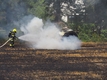 Durch das rasche Eintreffen der Einsatzkräfte konnte die Ausbreitung des Feuers auf das ganze Feld und die benachbarten Grundstücke schnell verhindert werden. Durch Einsatz von einem Hochdruckrohr, mehreren Feuerpatschen und C-Rohren wurde das Feuer in kürzester Zeit gelöscht und die abgebrannten Strohballen zerteilt, um ein erneutes Aufflammen zu verhindern.