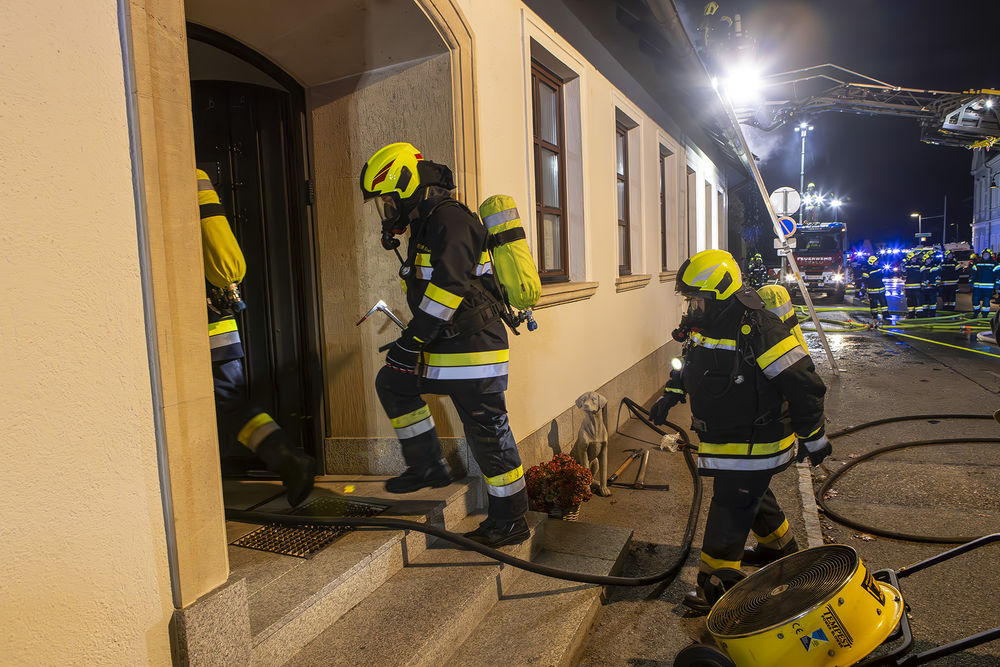 Bereits nach wenigen Minuten war die örtlich zuständige Feuerwehr Senftenberg vor Ort und setzte unverzüglich Erstmaßnahmen, die sofort Wirkung zeigten. Durch einen sofort eingeleiteten Außenangriff konnte die Brandintensität gebrochen werden. Ein Atemschutztrupp ging weiters in den Innenangriff. Nach dem Eintreffen der nachrückenden Feuerwehren legten diese mehrere Löschleitungen, stellten Atemschutztrupps und speisten die ebenfalls alarmierte Drehleiter aus Krems ein.