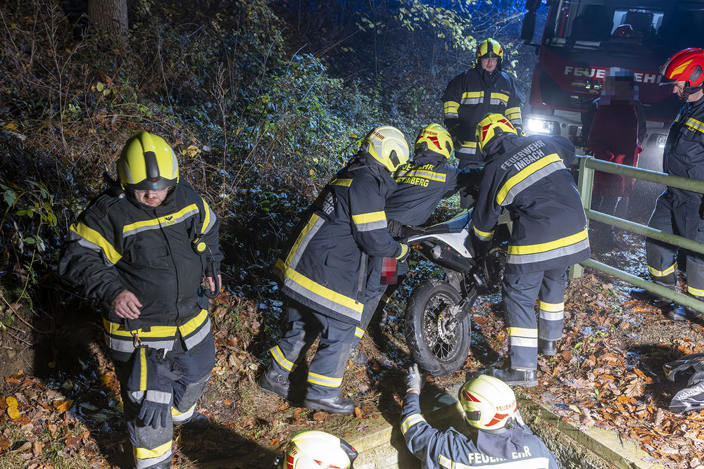 Die Bergung des Mopeds verlief reibungslos. Hand in Hand konnten die Einsatzkräfte das Fahrzeug bergen und vor Ort gesichert abstellen.