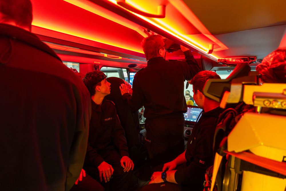 Bei der Planung der Geräteräume wurde auf die Bedürfnisse der Mannschaft Rücksicht genommen, sodass „ausgehend von unseren Erfahrungen der vergangenen Jahre viele Handgriffe optimiert werden konnten.“ Durch die neuartige Sitzanordnung im „RT“ sind Abstimmung und Einsatzvorbereitung mit dem Fahrzeugkommandanten bereits während der Anfahrt möglich – die Sitzreihen im Mannschaftsbereich sind nicht mehr klassisch hintereinander angeordnet, sondern im rechten Winkel zur Fahrtrichtung, wodurch die Kommunikation wesentlich verbessert wurde.