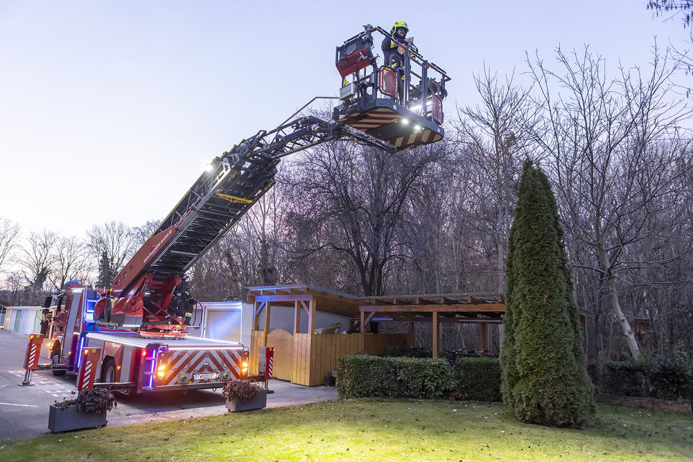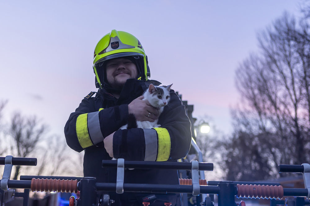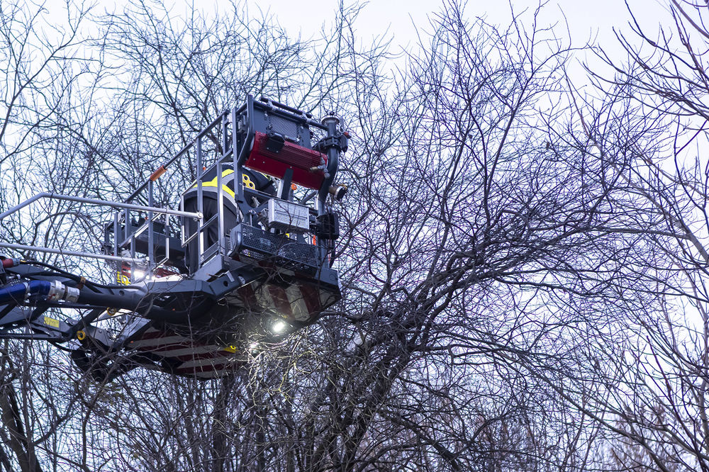 Drei Stunden später rückte die Hauptwache erneut zu einem technischen Einsatz aus. Eine Katze war seit mehreren Stunden auf einem Baum und konnte diesen augenscheinlich nicht mehr von allein verlassen. Mittels der Drehleiter konnte die weiße Samtpfote gerettet und dem Besitzer übergeben werden.