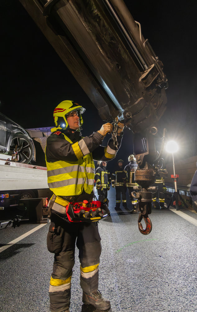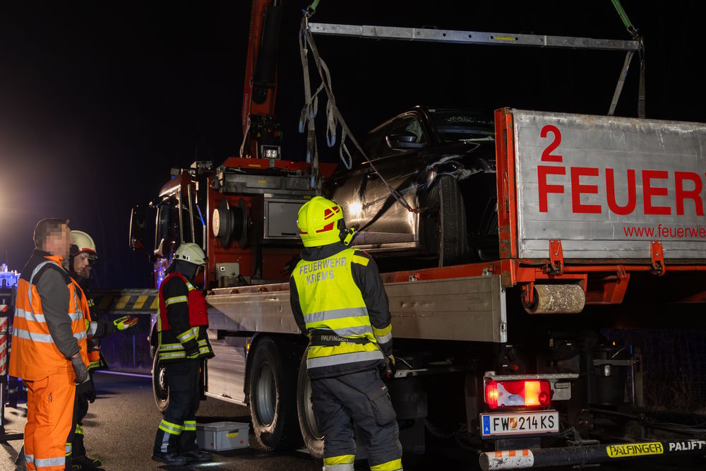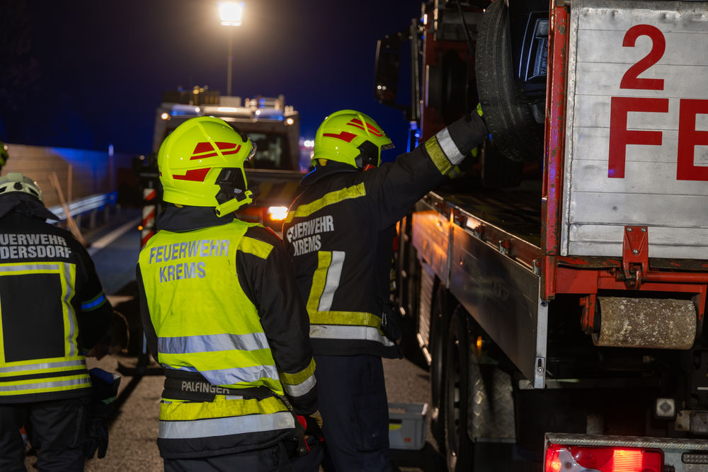 Zur Bergung eines der beiden Unfallfahrzeuge ließ der Einsatzleiter der Feuerwehr Gedersdorf die Hauptwache der Feuerwehr Krems mit dem Wechselladefahrzeug mit Kran nachalarmieren. Ein Teil der anwesenden Hausmannschaft rückte unverzüglich auf die Schnellstraße aus.