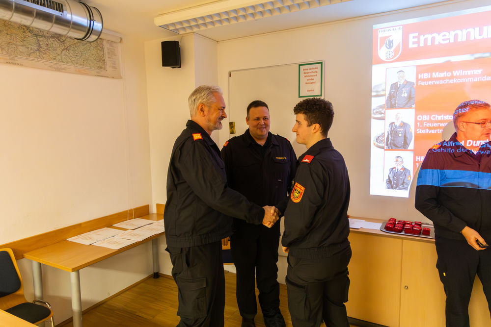 Im Zuge der Ernennungen wurde Patrik Leopold zum Oberbrandmeister, Andreas Schwendenwein zum Löschmeister, Franz Grasl zum Hauptbrandmeister und Franz Illkerl zum Oberlöschmeister befördert.