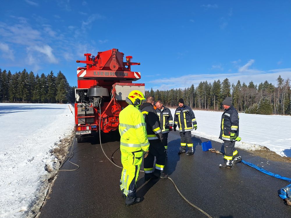 Nach einer rund zweistündigen Anfahrt wurde der Einsatzort erreicht. Die anwesenden Feuerwehren sicherten die Einsatzstelle ab, sodass die Arbeiten ungehindert durchgeführt werden konnten. In Zusammenarbeit mit den Feuerwehren Heidenreichstein und Eisgarn konnte die Bergung vorbereitet und schließlich durchgeführt werden.