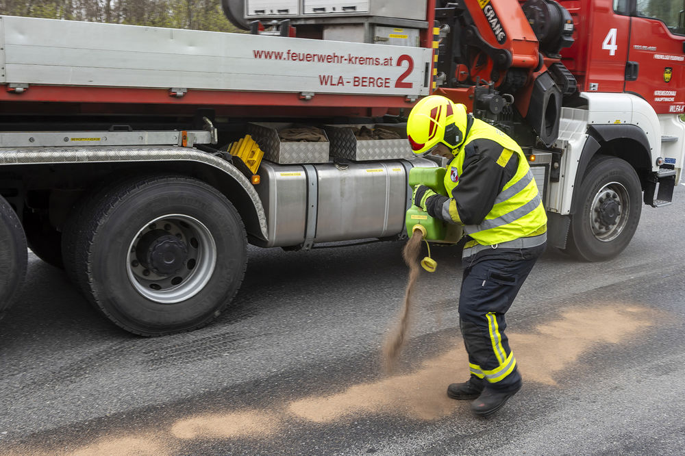 Der Auffahrunfall ereignete sich kurz vor 9.00 Uhr auf der Bundesstraße 3. Eine Lenkerin prallte mit ihrem Fahrzeug in das Heck eines anderen Autos. Die Frau blieb unverletzt, konnte ihre Fahrt aber nicht mehr fortsetzen. Die Front ihres Pkw war stark beschädigt, außerdem verlor das Fahrzeug Kühlflüssigkeit. Weil sich diese noch vor dem Eintreffen der Feuerwehr auf beide Fahrspuren ausgebreitet hatte, mussten die Einsatzkräfte der Hauptwache Krems Ölbindemittel aufbringen und die Fahrbahn abkehren. Die Bundesstraße 3 war während der Aufräumarbeiten in Fahrtrichtung Stein vollständig gesperrt - ein entsprechender Rückstau war die Folge. Die Insassen des zweiten Pkw blieben ebenfalls unverletzt. Sie konnten die Unfallstelle eigenständig verlassen.