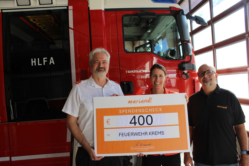 Dienstag, 30. Dezember 2025 Mariandl Krems unterstützt Helmaktion der Feuerwehr Krems Die Freiwillige Feuerwehr Krems bedankt sich beim Einkaufzentrum Mariandl Krems. Das Einkaufzentrum unterstützt die Feuerwehr bei der Anschaffung neuer Einsatzhelme mit einer Spende von jeweils 400 Euro. |